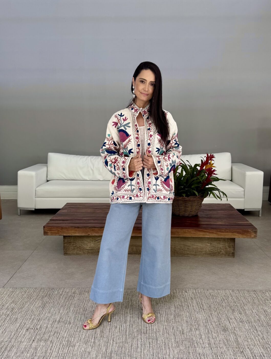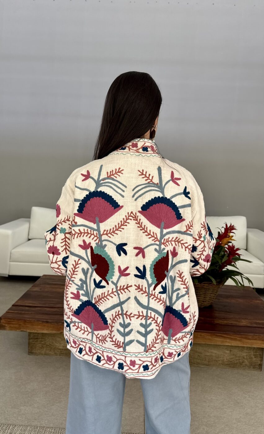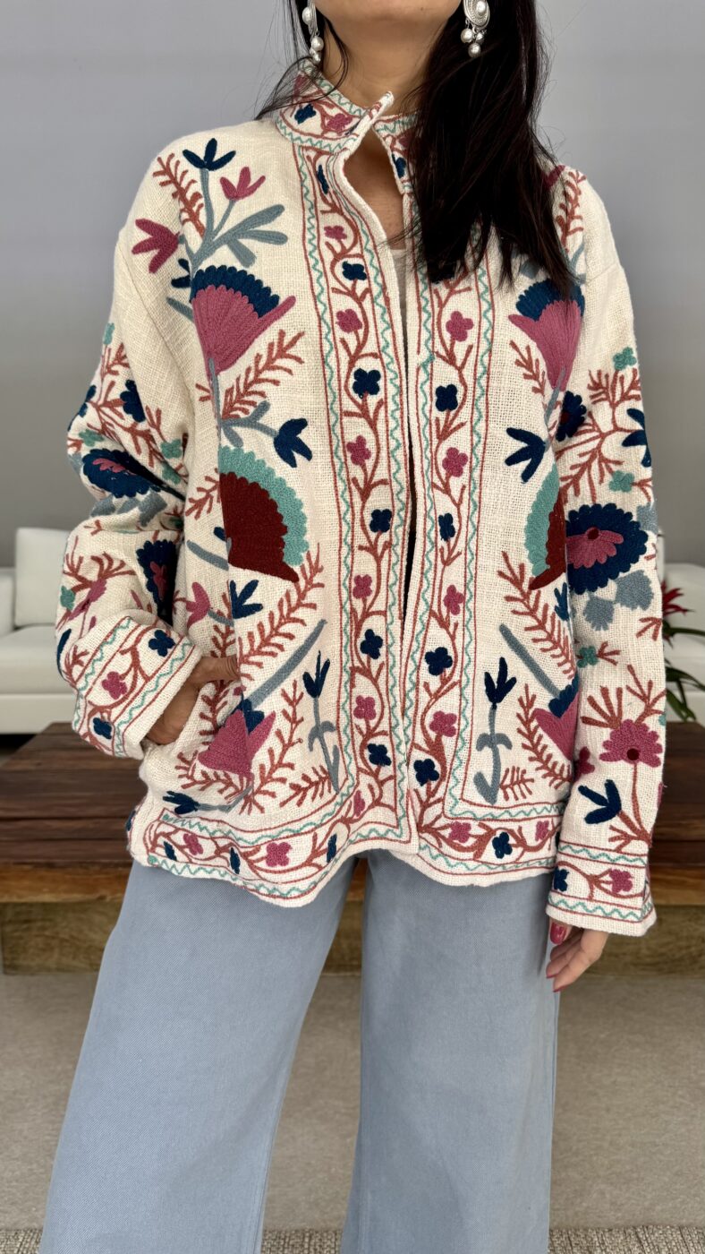 Casaco em base 100% algodão com bordado Suzani feito na Índia.